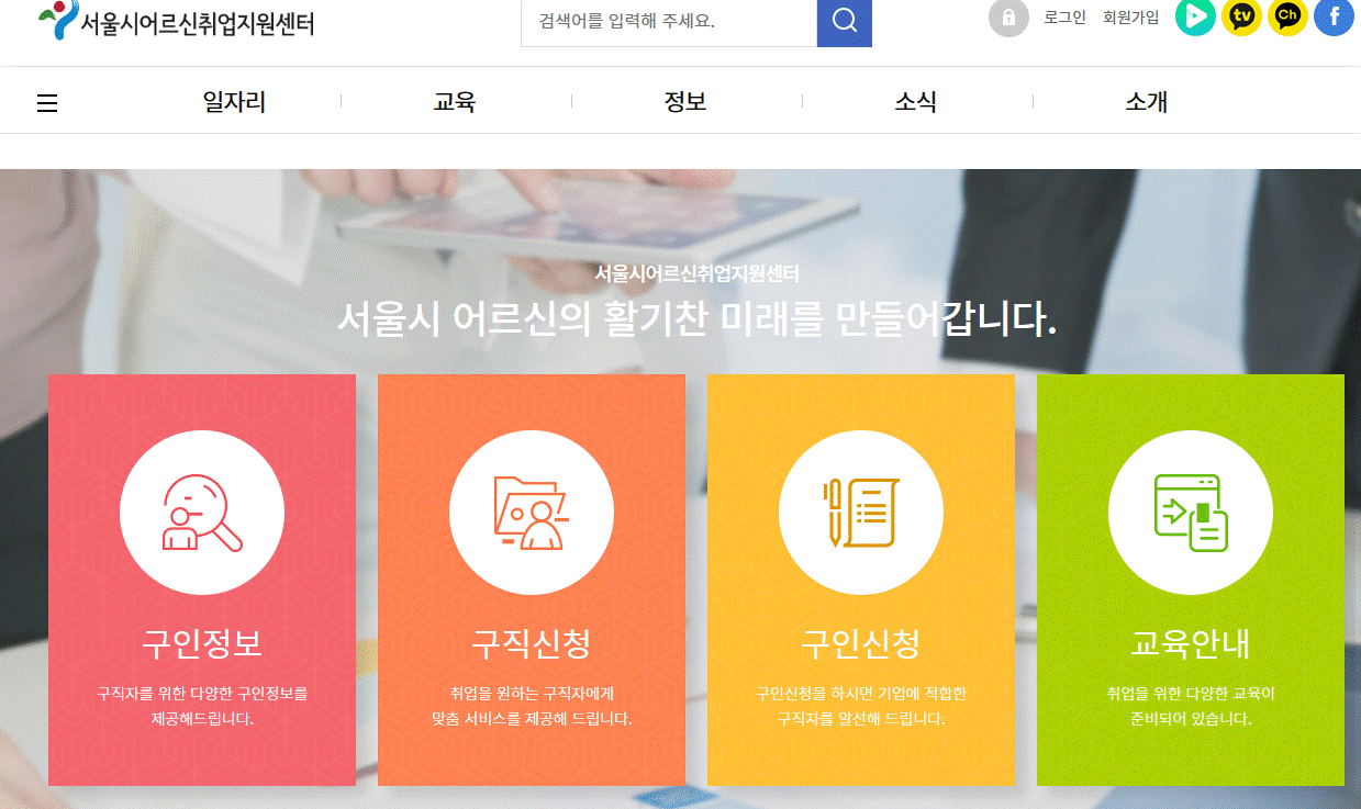 우리 사회가 곧 초고령 사회로 진입할 것이란 예측에 많은 분들이 은퇴 후의 삶에 대해 관심을 가지고 계실 텐데요. 오늘은 50대, 60대 분들을 위한 일자리 정보와 그 등록 방법, 취업 방법, 그리고 마음가짐에 대해 알아보는 시간을 가져보려고 합니다.
