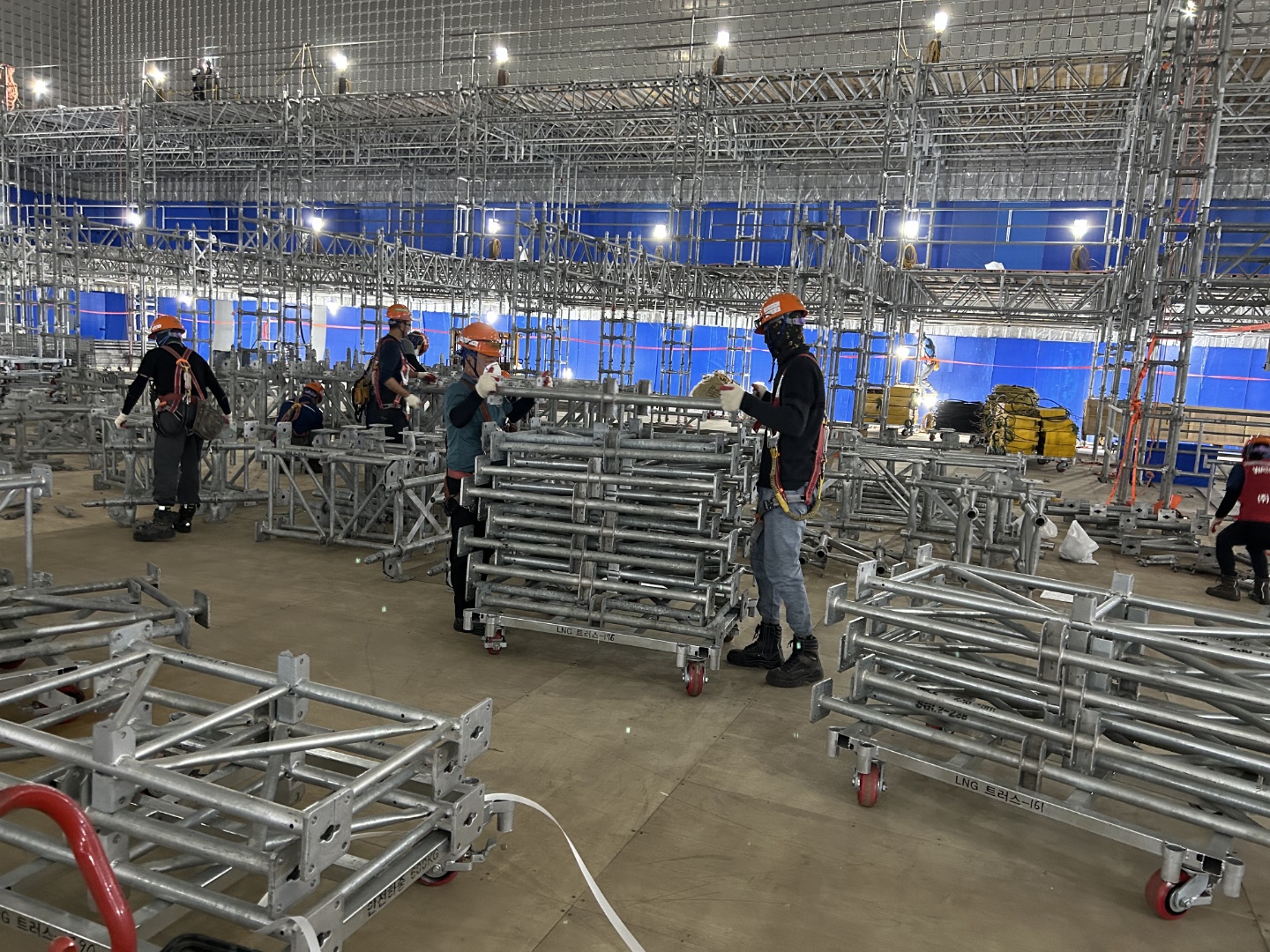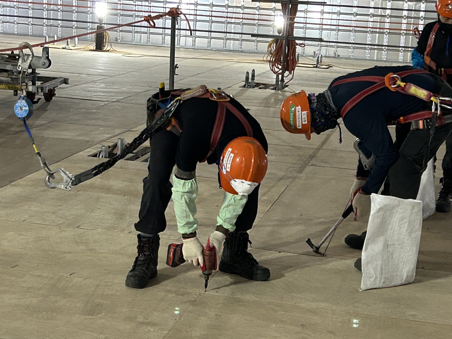초급자는 이 과정에서 중요한 역할을 맡습니다. 그들은 보다 경험 많은 기술자들이 해체하는 구조물을 안전하게 받아내고, 대차에 실어 정리하는 임무를 수행합니다. 이때, 초급자들은 2인 1조로 작업을 하게 되며, 서로의 움직임을 잘 조율해야 합니다. 이는 해체 작업이 원활하게 진행되도록 하기 위한 것이며, 초급자들에게는 업무를 익히는 좋은 기회가 됩니다.