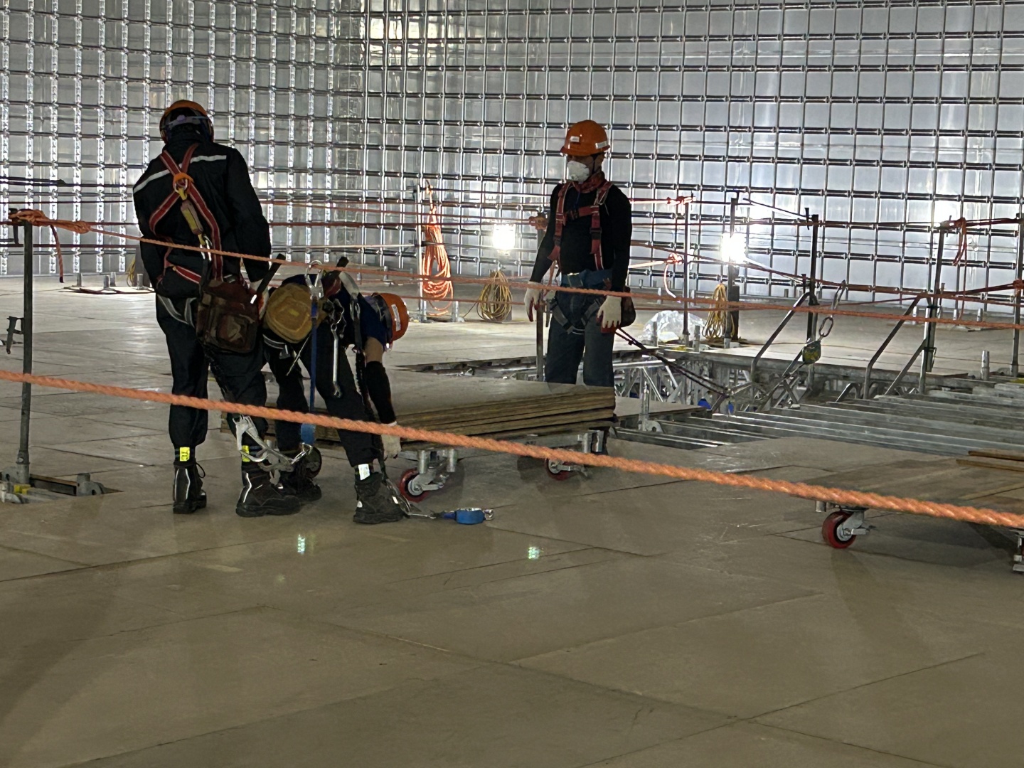 초급자는 이 과정에서 중요한 역할을 맡습니다. 그들은 보다 경험 많은 기술자들이 해체하는 구조물을 안전하게 받아내고, 대차에 실어 정리하는 임무를 수행합니다. 이때, 초급자들은 2인 1조로 작업을 하게 되며, 서로의 움직임을 잘 조율해야 합니다. 이는 해체 작업이 원활하게 진행되도록 하기 위한 것이며, 초급자들에게는 업무를 익히는 좋은 기회가 됩니다.